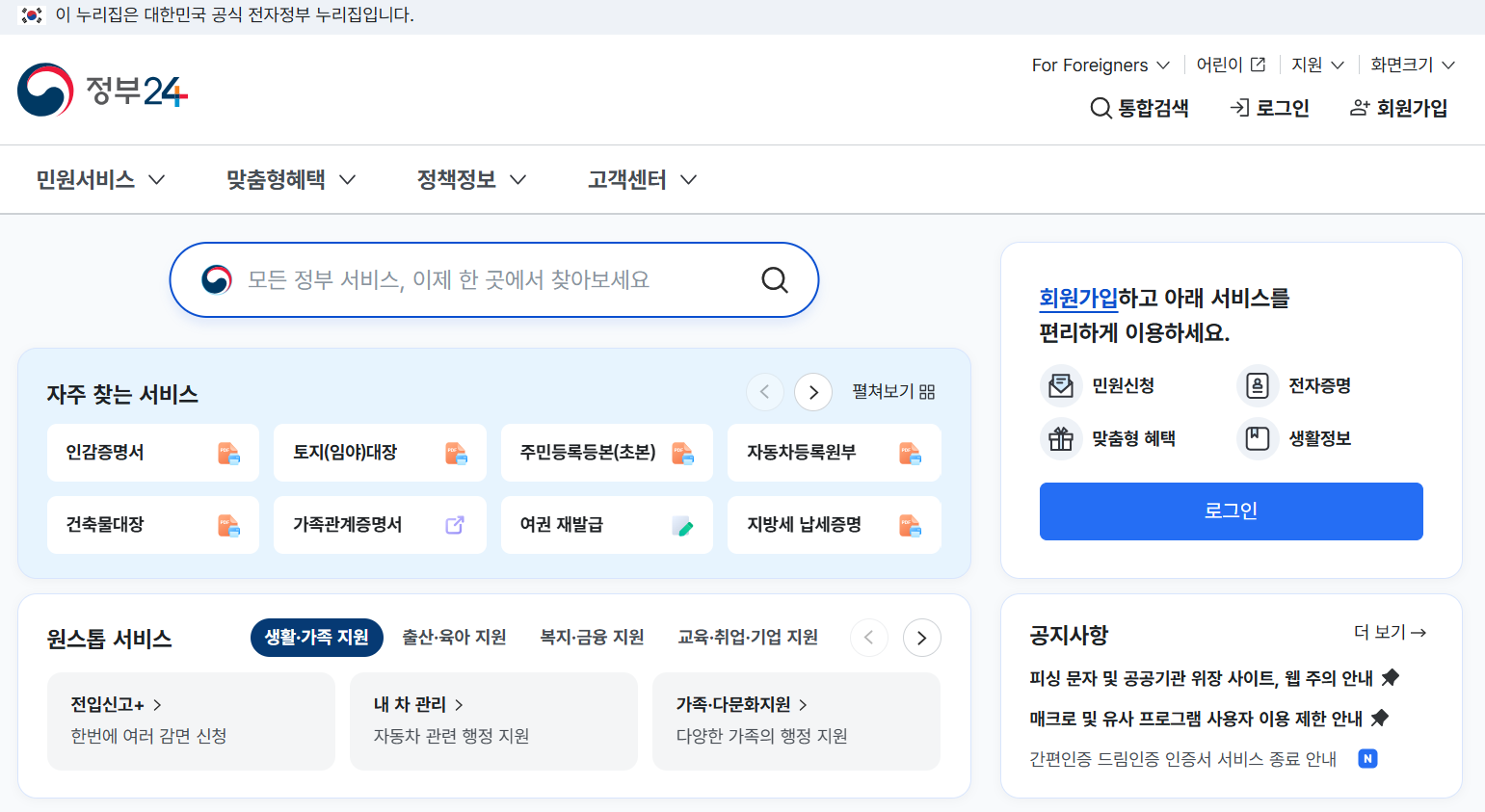 - 본인 인증(카카오·네이버·PASS 인증서 지원)