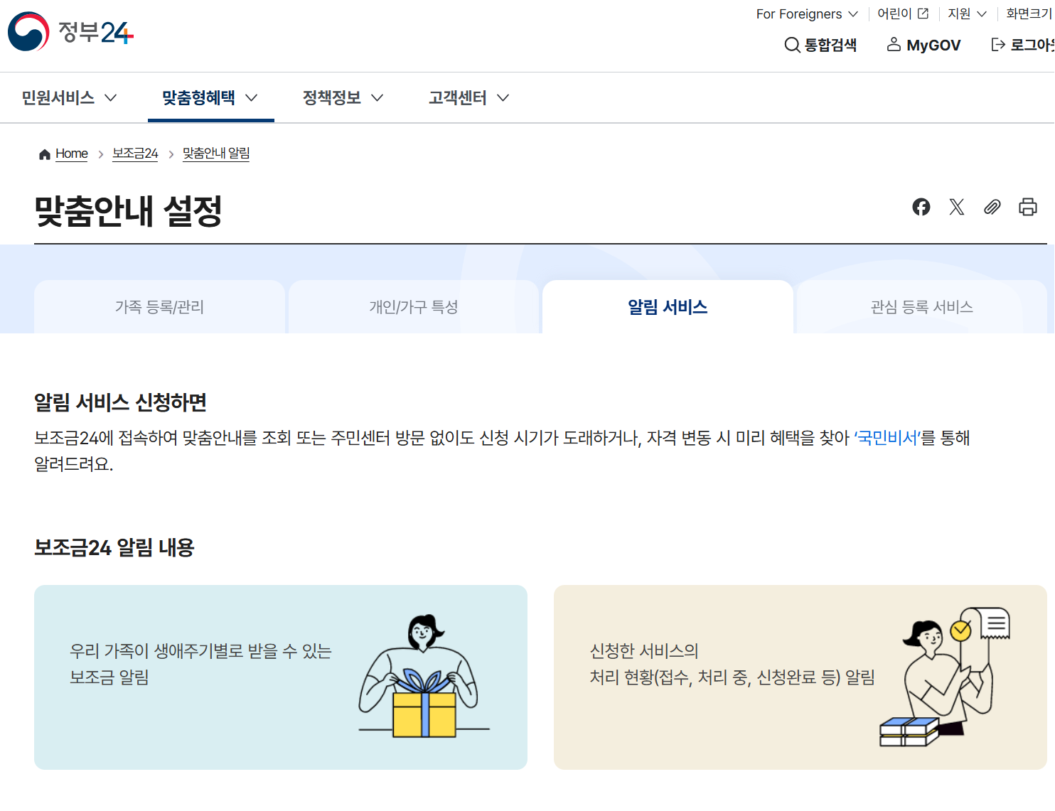 정부24에서는 맞춤 알림 서비스를 제공하여 신청 가능한 새로운 지원금이나 신청 기한이 임박한 제도를 자동으로 알려줍니다. 이를 설정해두면 ‘지원금을 놓쳤다’는 아쉬움을 최소화할 수 있습니다.